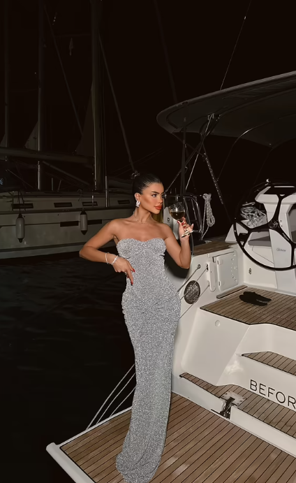 Das Midnight Allure Gown ist die Verkörperung von Luxus, Eleganz und verführerischer Präsenz. Mit seinem figurbetonten Schnitt, dem schimmernden Stoff und dem edlen Bandeau-Oberteil betont es jede Kurve auf elegante Weise. Das Kleid ist ein Statement für selbstbewusste Frauen – perfekt für Galas, Yachtnächte oder exklusive Abendevents. Erhältlich in Silber, Gold und Rosé-Violett.