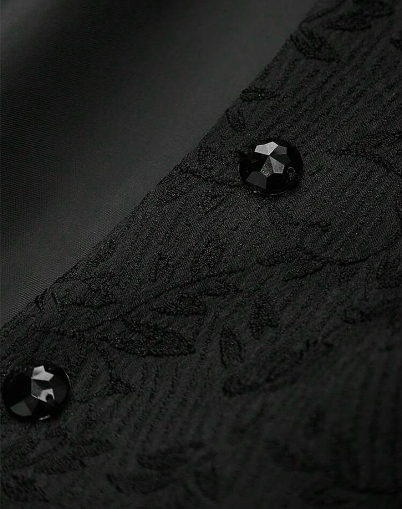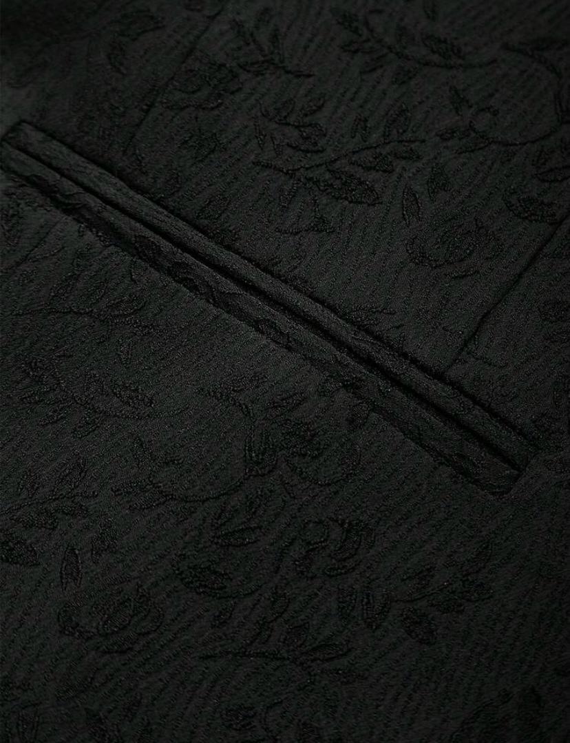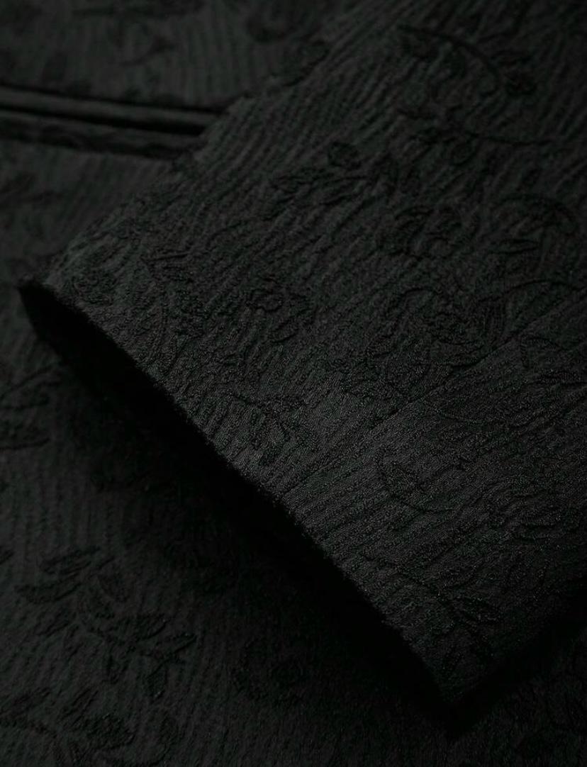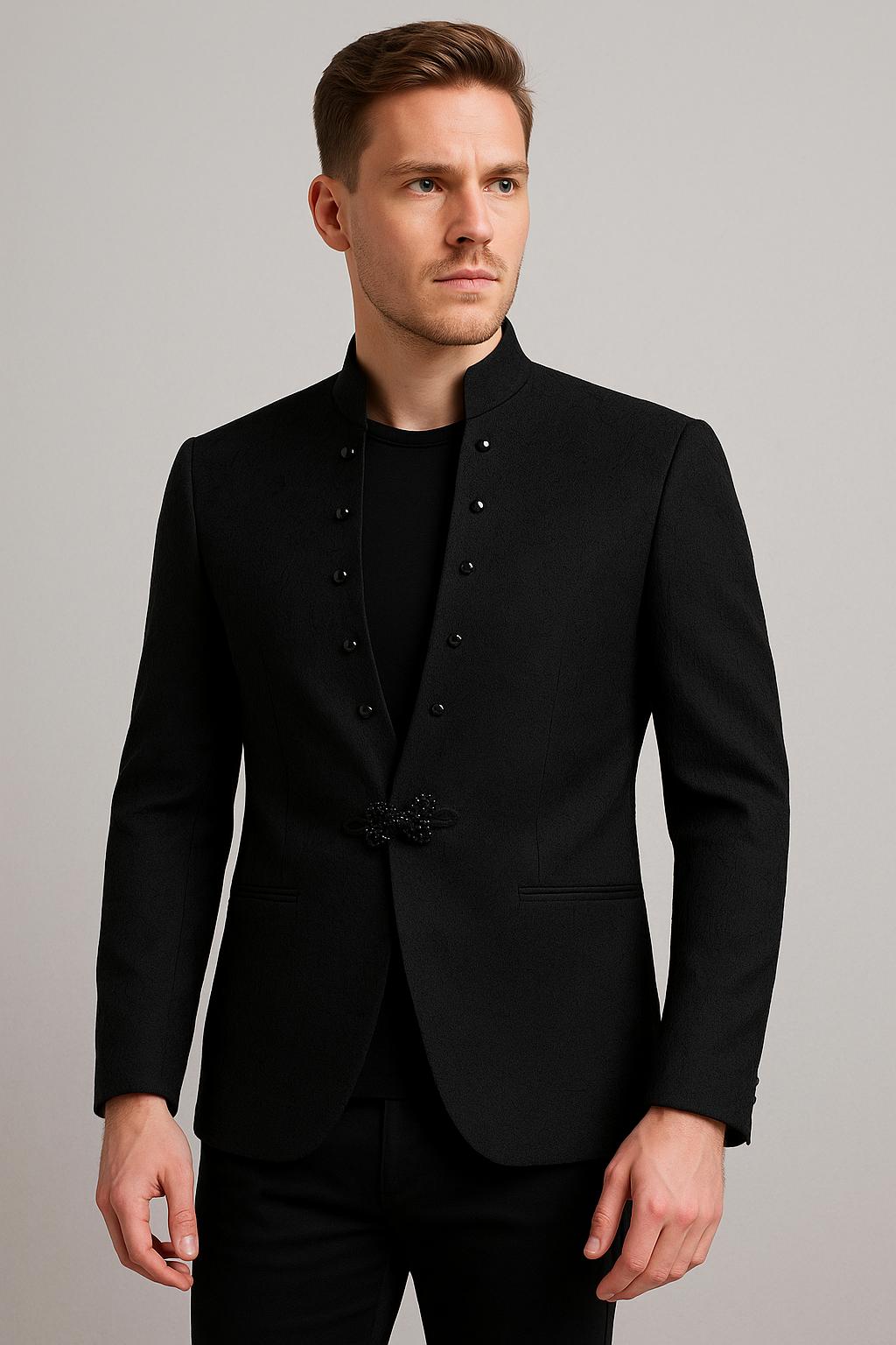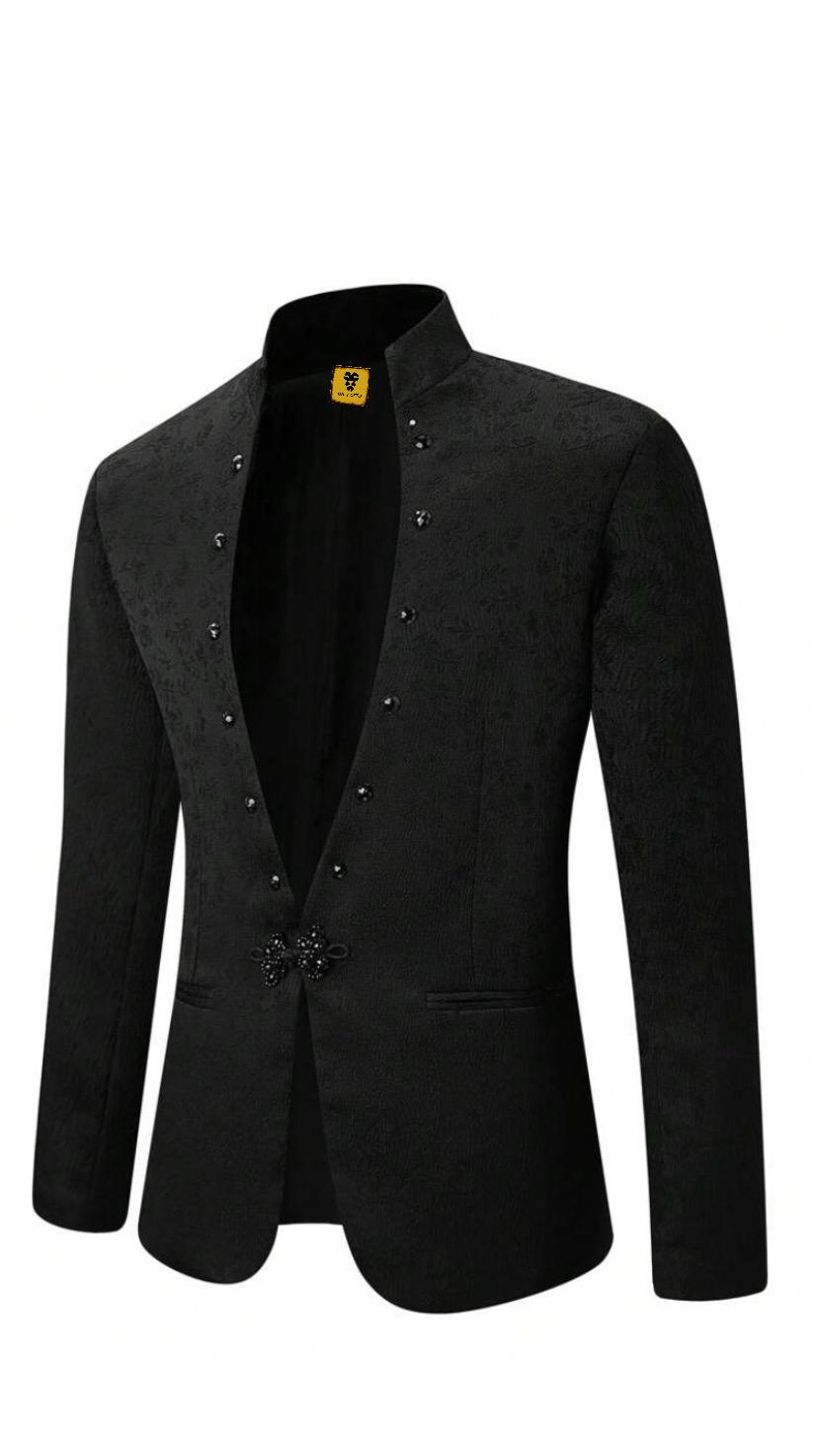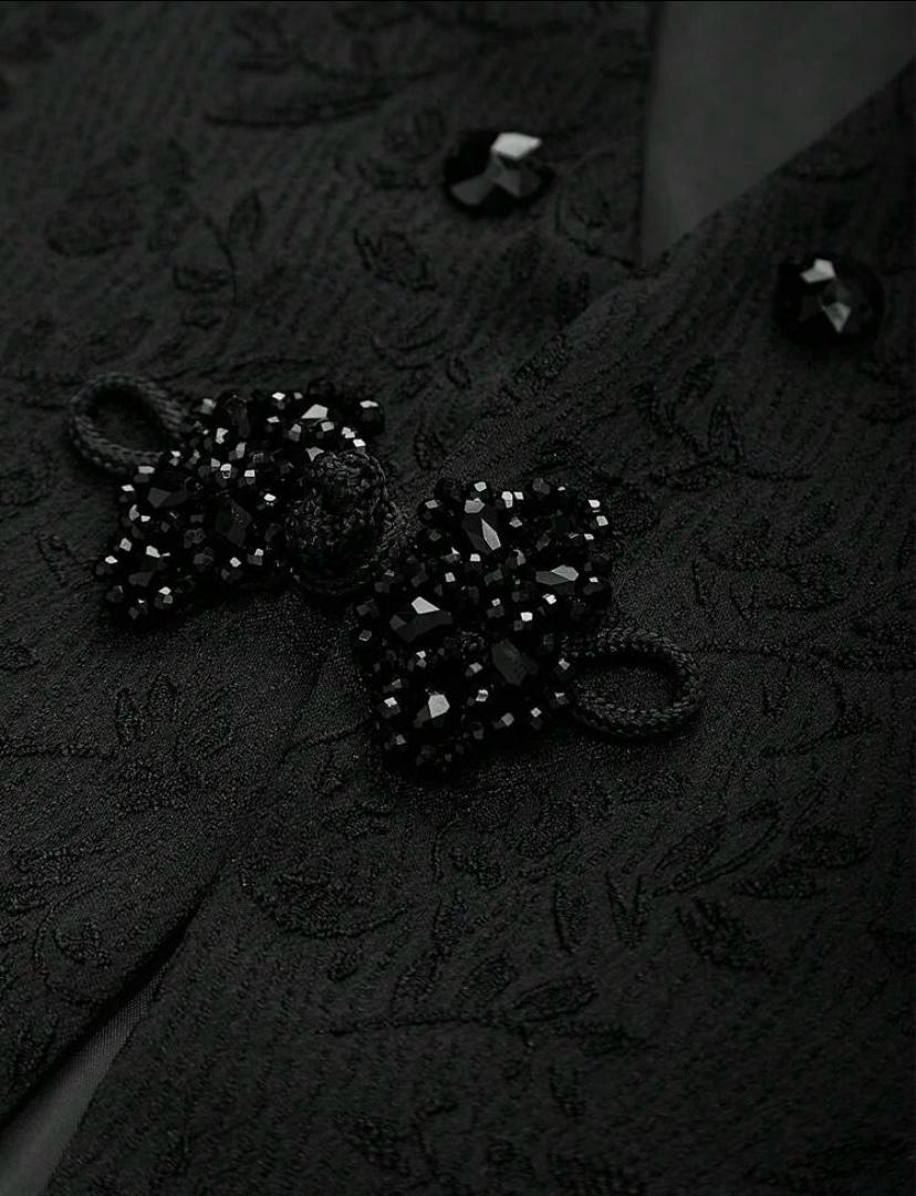 Elegant, edel, außergewöhnlich: Der “CETO Nocturne Élite” ist ein Meisterwerk für moderne Gentlemen mit Sinn für stilvolle Extravaganz. Das edle Schwarz in floraler Brokatstruktur trifft auf fein platzierte Zierknöpfe und eine kunstvolle Perlenverzierung an der Front. Ob Gala, Abendbankett oder stilvolles Dinner – dieser Sakko lässt dich glänzen, ohne laut zu sein.