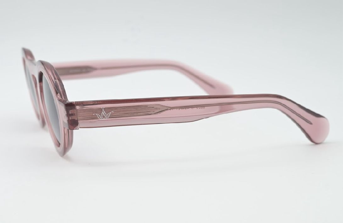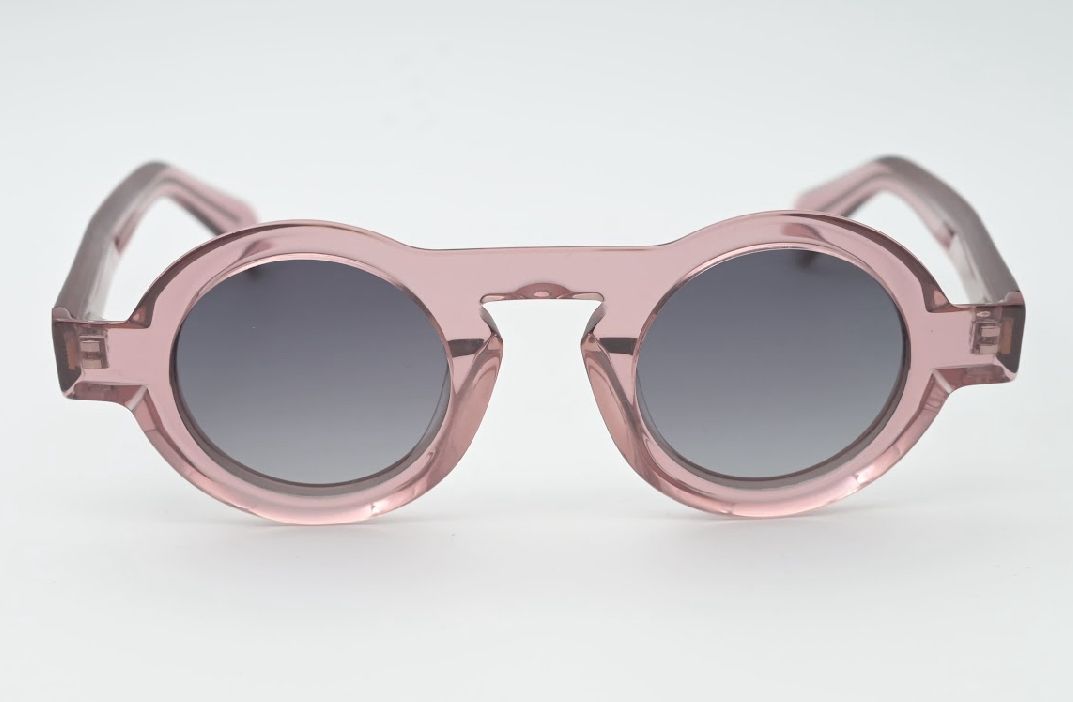 Die Rosé Vision von Sossa Eyewear verbindet minimalistisches Design mit maximaler Wirkung. Der runde Rahmen aus transparentem, zartrosafarbenem Acetat ist ein echter Blickfang – elegant und mutig zugleich. Die grau verlaufenden Gläser bieten zuverlässigen UV-Schutz und ergänzen das Design mit einem coolen Kontrast.